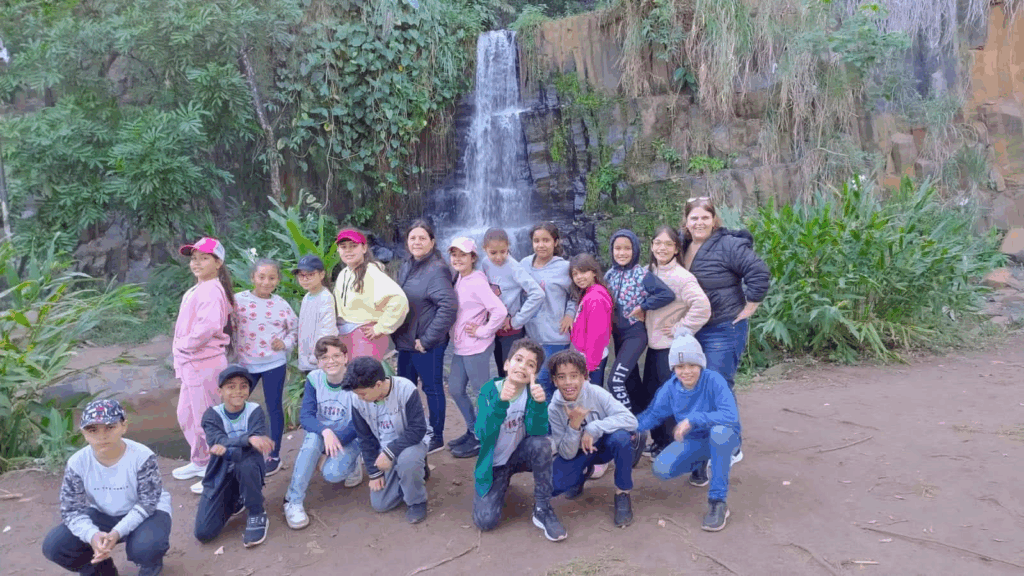 Durante o passeio, as crianças tiveram a oportunidade de estar em contato direto com a natureza, aprendendo na prática sobre a importância da preservação ambiental.