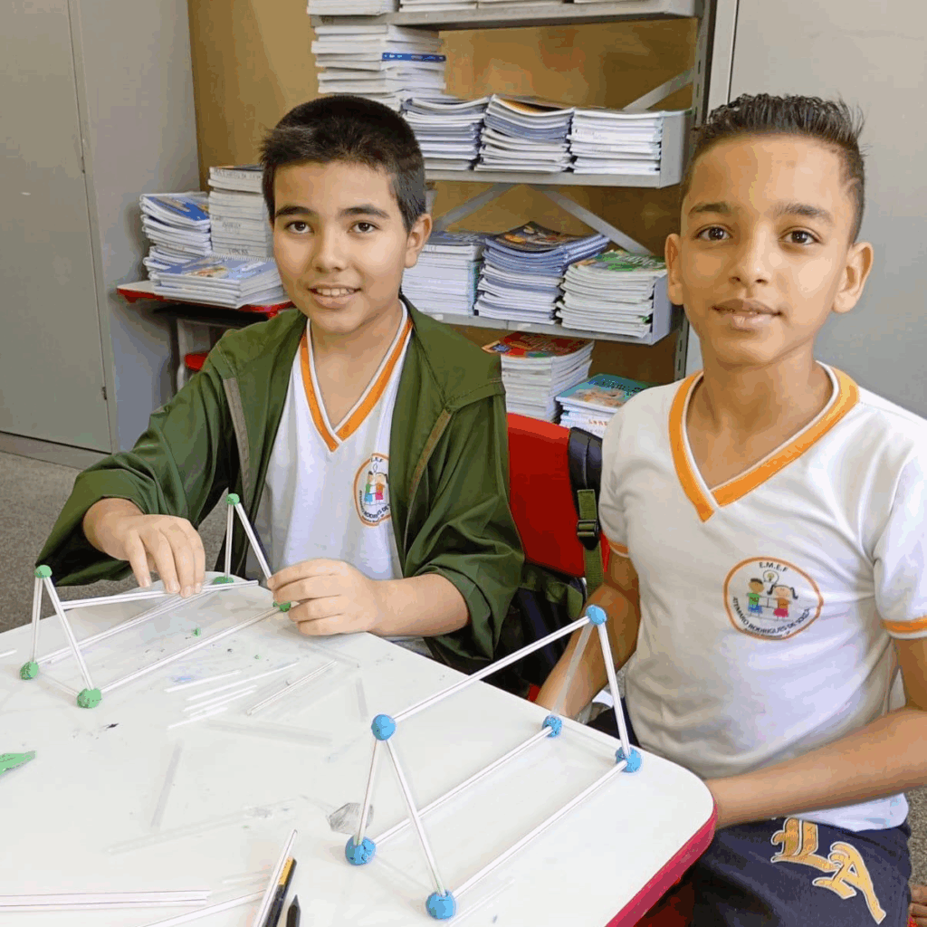 Os alunos exploraram o aprendizado por meio da construção de pirâmides e prismas, unindo o lúdico à prática para fortalecer seus conhecimentos matemáticos.