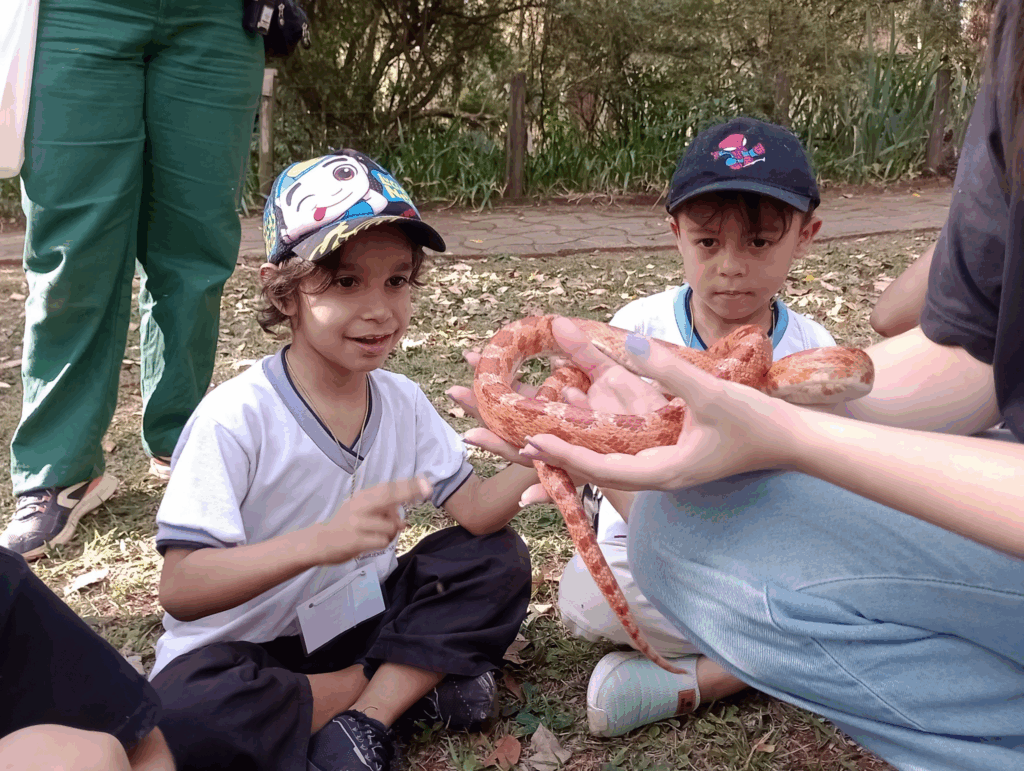 A atividade faz parte do projeto “No Mundo dos Animais”, que proporciona contato direto com a diversidade da vida animal e desperta a consciência para o cuidado com a natureza. 🌸✨