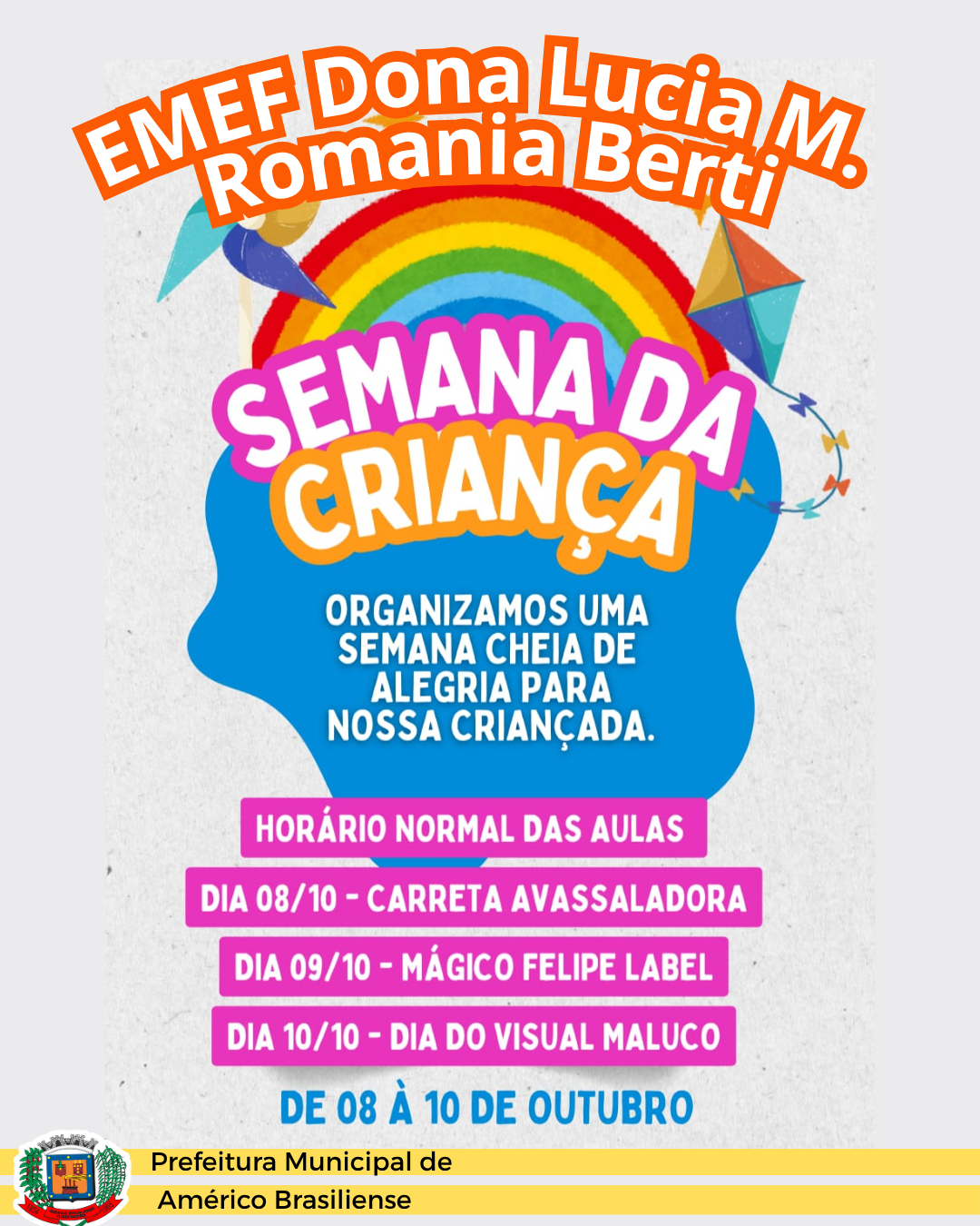 EMEF Dona Lucia Mariana Berti Romania Divulga Programação Especial de
