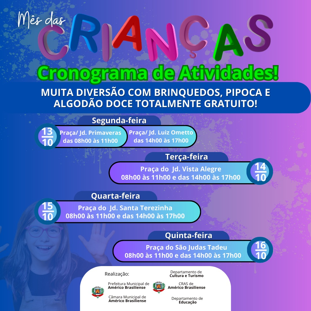 A Prefeitura Municipal de Américo Brasiliense convida crianças de 6