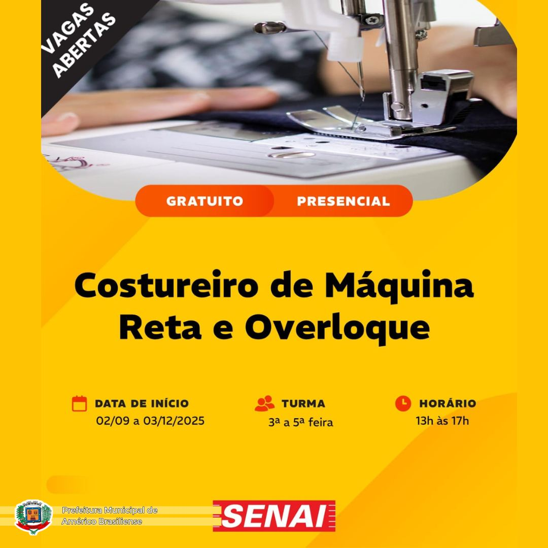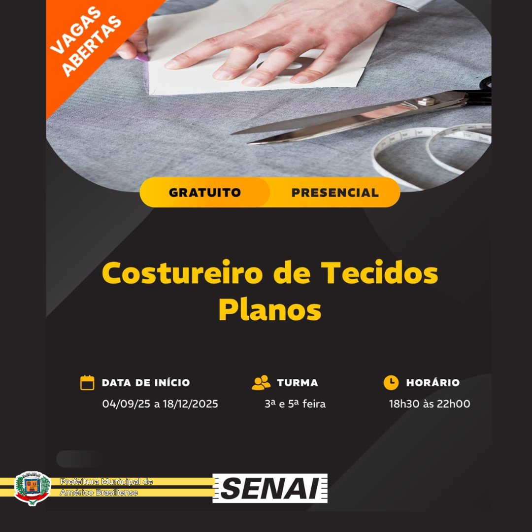 Costureiro(a) de Tecidos Planos – 100 horas Período: 04/09 a