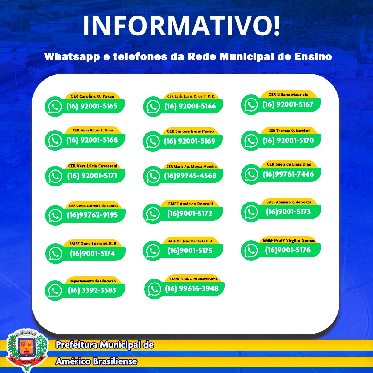 A Prefeitura de Américo Brasiliense disponibiliza os contatos de WhatsApp