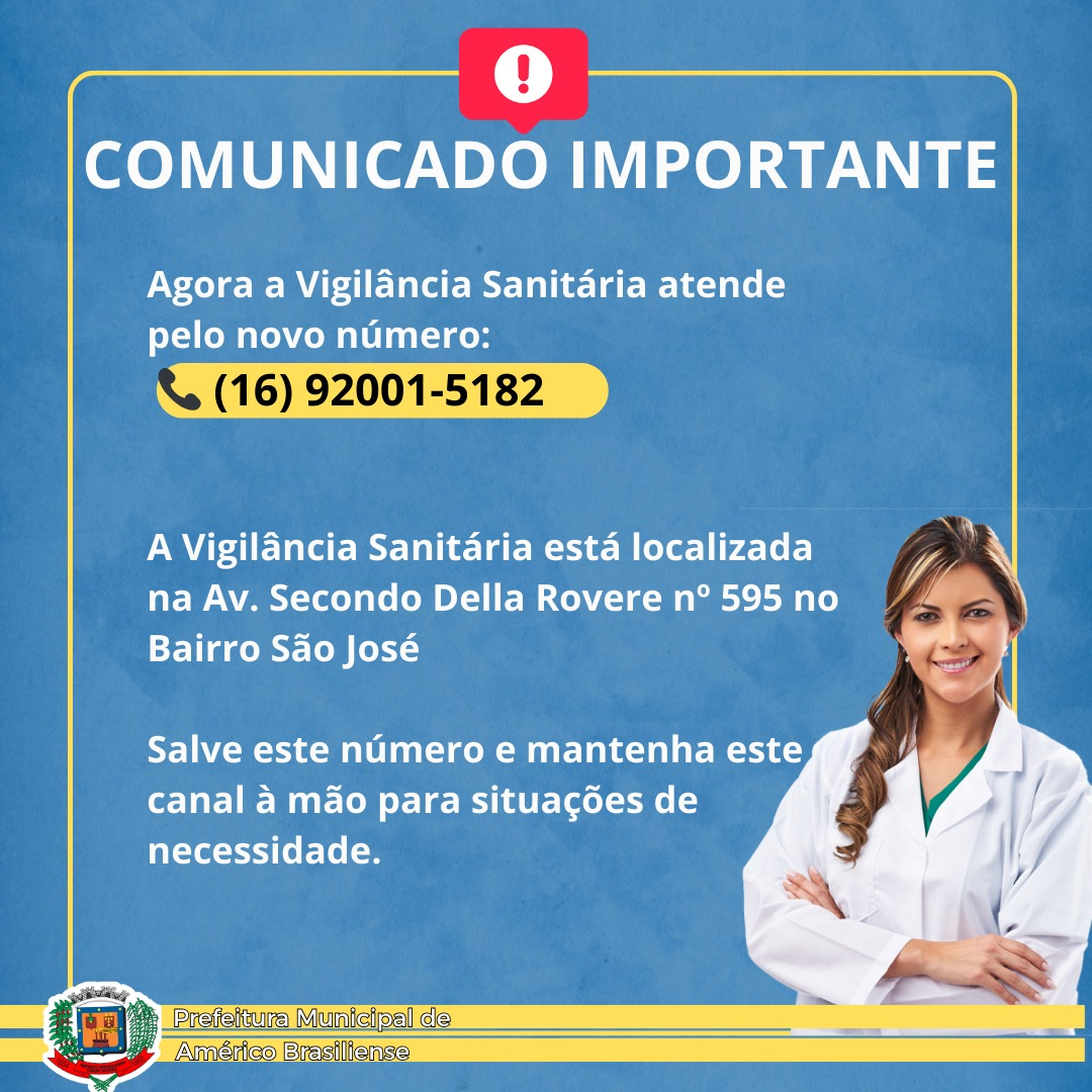 A Vigilância Sanitária agora atende pelo novo número: (16) 92001-5182
