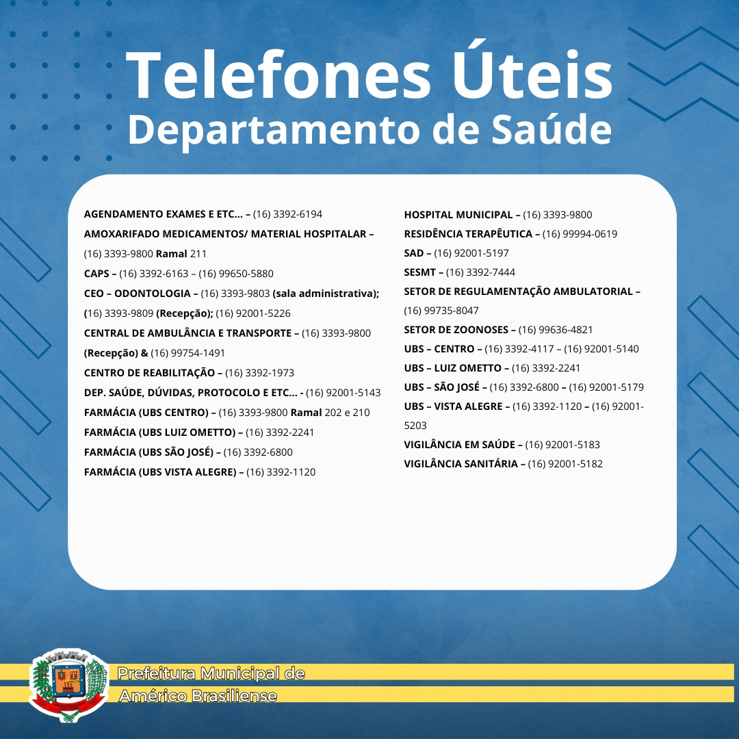A Prefeitura de Américo Brasiliense disponibiliza os principais contatos da
