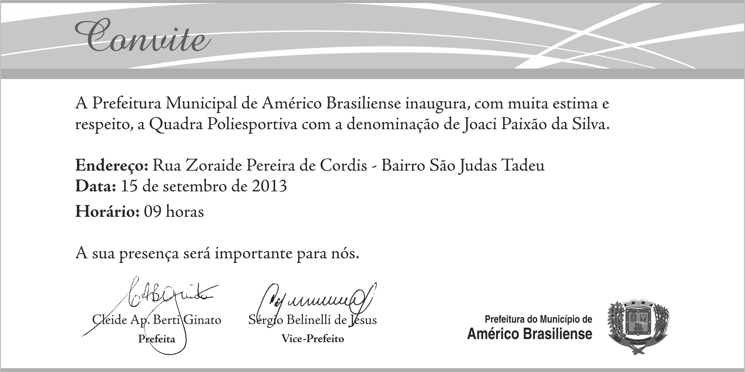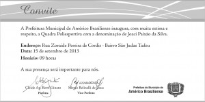 Convite Inauguração Quadra Poliesportiva