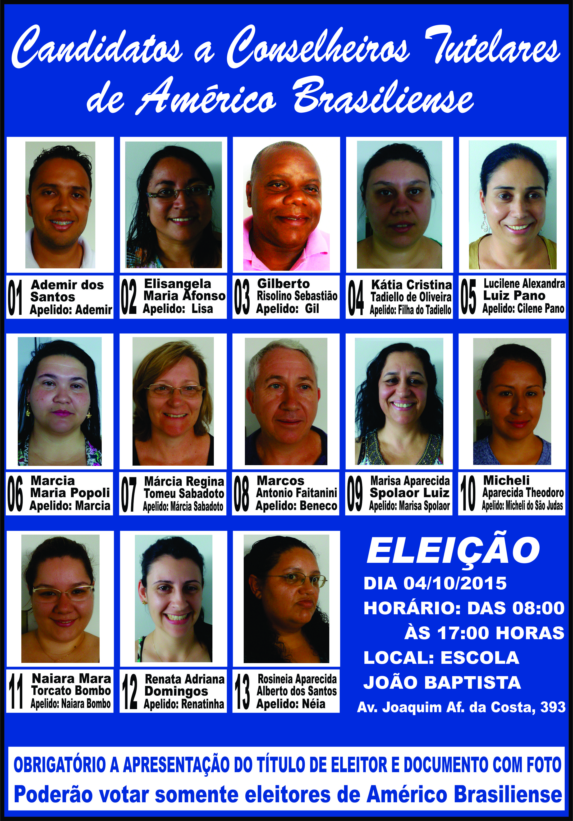 No próximo dia 04 de outubro de 2015, ocorrerá a eleição para novos Conselheiros Tutelares.