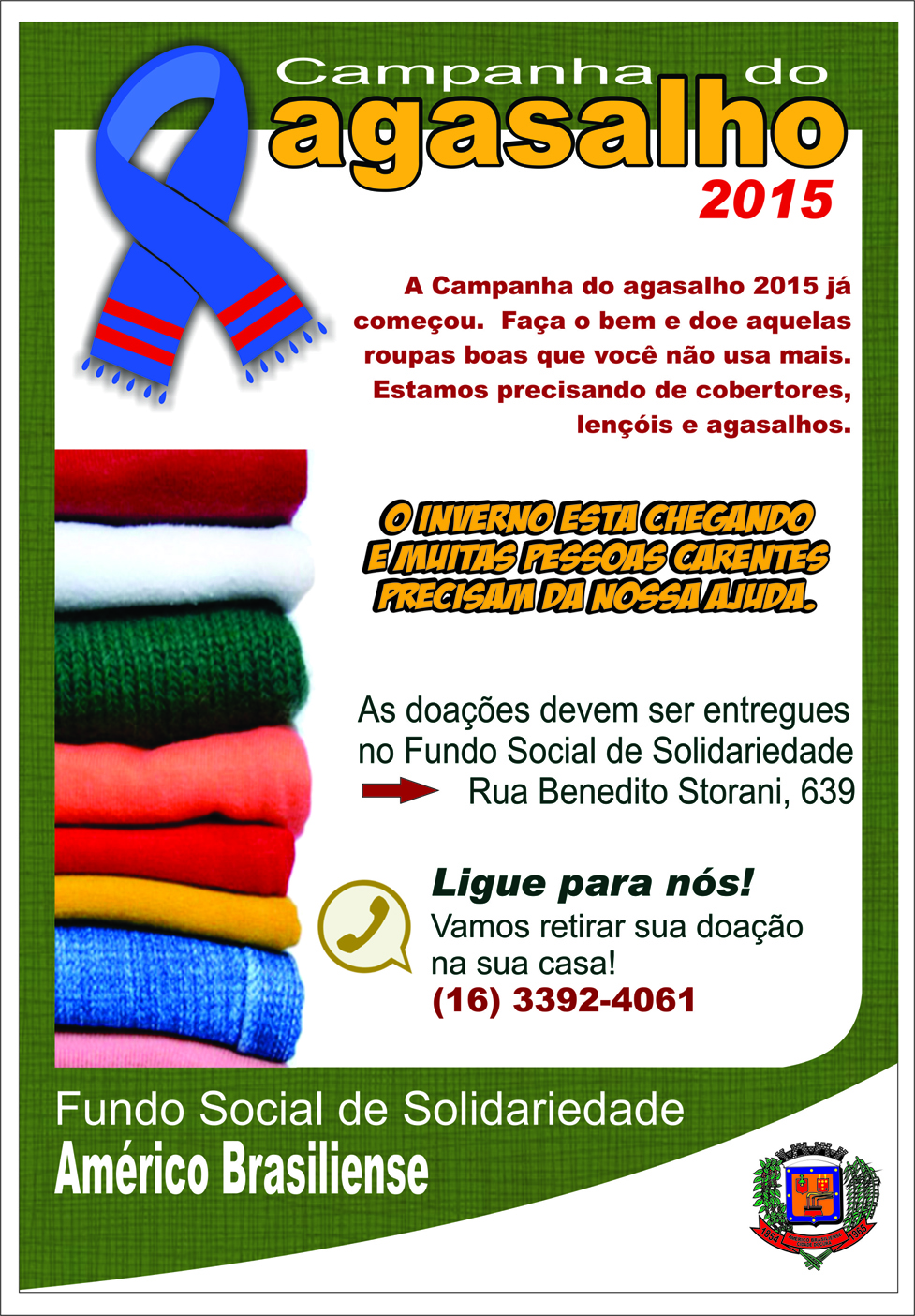 Fundo Social de Solidariedade realiza Campanha do Agasalho 2015.